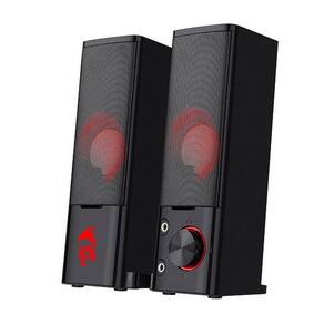 CAIXA DE SOM USB/P2 SOUNDBAR GAMER ORPHEUS REDRAGON GS550 PRETA Características: - Marca: Redragon - Modelo: GS550 Especificações: - Moderno Design compacto e Modular para grande Estilo em seu Setup - Use a Orpheus como 2 caixas independentes de Áudio ou conecte-as como uma linda Soundbar - Funcionamento Estéreo 2.0 com excelente qualidade de baixos - Plug and Play para alta compatibilidade: a Orpheus utiliza uma combinação de conectores P2 de 3.5mm para áudio e microfone e USB para energização - Iluminação Vermelha para estilo único - Baixos poderosos para maior imersão - Controle prático de Volume e desligamento - Interface adicional para conexão de Headset/Microfone direto na Caixa - Qualidade aprimorada de áudio poderosa para jogos, músicas e filmes - Alto Volume sem distorções para uma excelente experiência de áudio ?Destaques: - Falantes Estéreos (2.0) com 3W de Potência cada - Conectividade: P2 3.5mm (Áudio + Mic) + USB (Energização dos Leds) - Iluminação Fixa em Vermelho