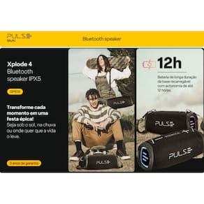 A Pulse é uma marca renomada no mercado de áudio, reconhecida por sua qualidade e inovação. Escolha a Xplode 4 e experimente o melhor em som portátil, garantindo durabilidade e desempenho excepcionais em cada reprodução.