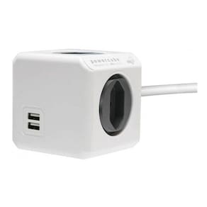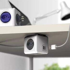 A caixa de tomada usb possui cabo de 3 metros de comprimento, 4 tomadas bivolt e 2 portas usb de 2.4a. Versátil, este modelo de caixa tomada também conta com uma base autoadesiva (dock station) e removível, que permite fixação em superfícies planas como mesas ou móveis, tanto na parte superior quanto inferior das mesmas.