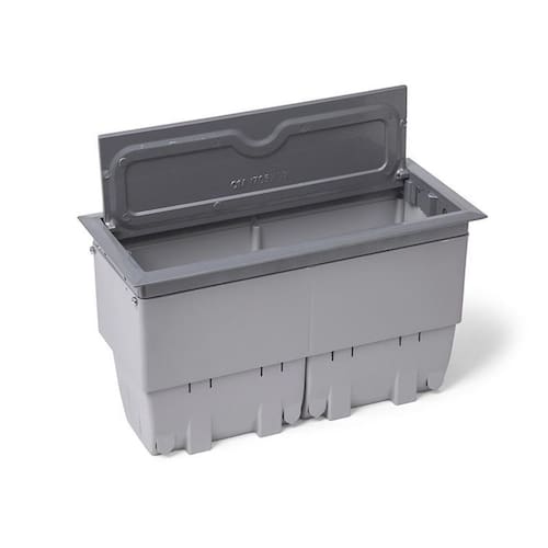 Caixa de mesa 8 blocos em alumínio cinza - linha open boxexcelente solução para instalação fácil e com baixo custo. Fabricação: colarinho e tampa em alumínio injetado. Guia e fundo em termoplástico.