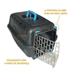 A Caixa de Transporte é uma novidade de conforto e segurança nas viagens e passeios para o pet. Desenvolvida com plástico reciclado injetado, toda presa com parafusos nas laterais para maior segurança no transporte, ela conta com porta de aço super resistente e elegante. A portinha possui abertura lateral para os dois lados.