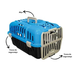 Itens inclusos: 1 base, 1 teto, 1 porta, 1 trava de porta, 4 travas, 1 alça. Dimensões aproximadas do produto: 49cm x 28,5cm x 33cm. Recomendado: Recomendado para cães e gatos. Alimentação: Não necessita. Material composição: Plástico polipropileno. Certificação: Ncm 4006.90.00. Garantia do Fabricante: 03 meses contra defeitos de fabricação.