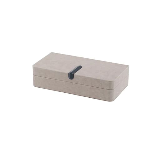 Caixa Decorativa Em madeira E Couro Sintético Bege e Preto Cód:AH0615