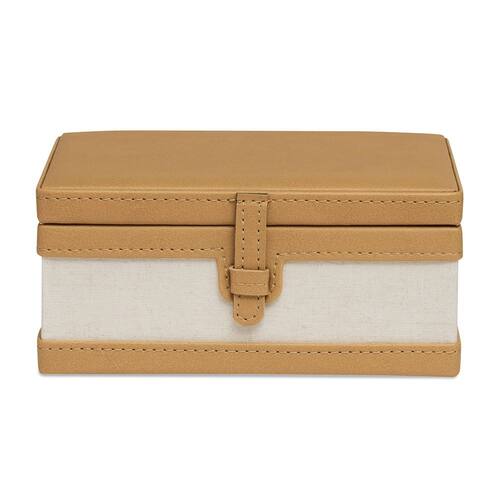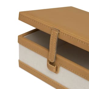 Caixa Decorativa em MDF com Revestimento em Linho e PU Caramelo