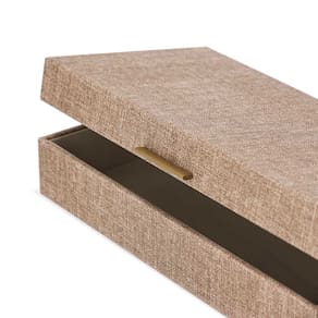 A Caixa Decorativa em MDF com Revestimento em PU é perfeita para quem busca organização com elegância. Seu acabamento texturizado e o puxador metálico dourado adicionam um toque moderno e sofisticado, ideal para compor salas, closets, escritórios e suítes.