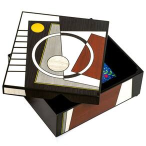 apresentamos a você o nosso mais recente produto: a caixa organizadora artesanal em madeira com desenhos geométricos e cores artísticas, design, sofisticação e luxuoso.