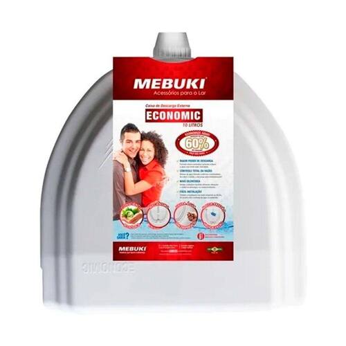 Caixa de Descarga Mebuki --maior poder de descarga: formato cônico centraliza a pressão e libera a água com maior velocidade.-controle de vazão.-mais silenciosa: soluções de design técnico.-eliminam as vibrações e os ruídos.-dimensões aproximadas AxLxP 14 x 13 x 6.-peso: 590 g.-capacidade de Vazão 8 litros Embalagem.
