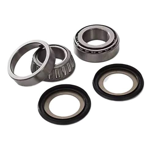 Tipo: Rolamentos cônicos, para melhor distribuição de carga e maior resistência.Inclui: 1 conjunto de rolamentos para a caixa de direção (superior e inferior).2 retentores (superior e inferior) para maior proteção e vedação.Benefícios: