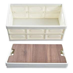 Cesta Organizadora Dobrável e Empilhável em PP e Madeira – Bege
