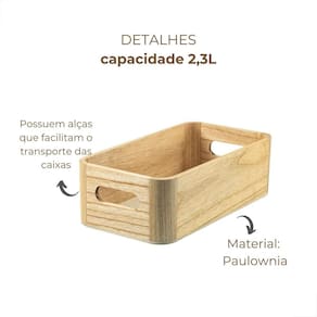 A Caixa Organizadora Armário 2,3L Paulowina Modular Cozinha Ou é uma solução versátil e prática para manter a sua casa organizada. Com capacidade de 2,3 litros, ela oferece espaço suficiente para armazenar diferentes itens, seja na cozinha, no quarto ou em qualquer outro ambiente. Seu design modular permite montar composições de acordo com suas necessidades, proporcionando maior flexibilidade. Além disso, a caixa é fabricada em Paulownia, um material renovável e sustentável. Com a Caixa Organizadora Armário 2,3L Paulowina Modular Cozinha Ou, você terá um produto de qualidade, durável e elegante para facilitar o seu dia a dia.