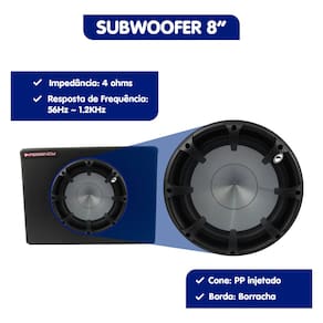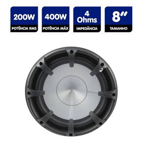 - Alta Potência: O Subwoofer Hurricane Class 8" tem potência máxima de 400 W e potência RMS de 200W, garantindo graves profundos e poderosos.