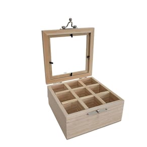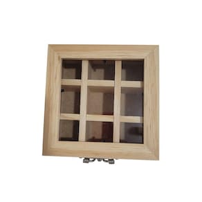 Caixa em Pinus c/9 espaços, vidro e fecho 15x15- Jeito Próprio Artesanato -