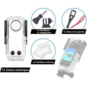 Caixa Estanque Waterproof Case 40m para Câmeras Insta360 X3 A Caixa Estanque Waterproof Case para Insta360 X3 é ideal para mergulho, surf, snorkeling e outras atividades aquáticas. Com ela é possível proteger a sua câmera de ação em mergulhos de até 40 metros de profundidade.