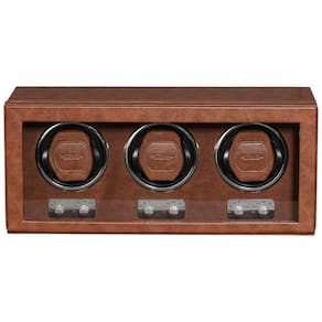 Artesanato de alta qualidade este enrolador de três relógios apresenta uma moldura de madeira envolta em couro PU com um interior de micro camurça. O hardware oculto dá a este enrolador uma sensação super luxuosa e sofisticada. Perfeito para exibir relógios sofisticados na mesa de cabeceira, estante, mesa ou cômoda. s suportes atualizados cabem na maioria dos relógios cada enrolador vem com 6 suportes de relógios ultramacios 3 de cada, pequeno e grande que podem ser compactados para caber em pulseiras masculinas e femininas de 16 a 23 centimetros. Para liberar o suporte do relógio, aperte os dois flanges e puxe o com cuidado. Para travar o suporte no lugar, aperte os flanges e deslize de volta para o copo, alinhando com os dois orifícios em cada lado do copo. Múltiplas configurações de TPD e rotação 3 modos de rotação modo horário, modo anti horário, modo horário e anti horário. Velocidades de 5 voltas por dia TPD 650, 750, 850, 1000, 1950 Cada relógio pode ter configurações diferentes para dar corda de maneira ideal aos seus relógios. Este enrolador usa 2 motores japoneses super silenciosos para garantir que não haja interrupções se estiver no quarto ou no escritório Marca: Não Informado