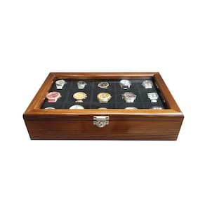 Caixa/Estojo para 15 Relógios - Tabaco flocado de Preto