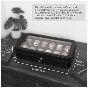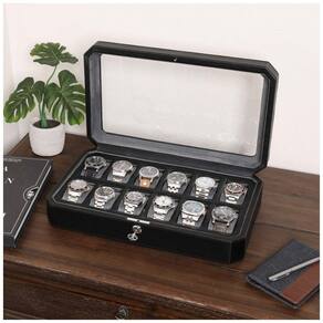 12 COMPARTIMENTOS GRANDES PARA RELÓGIOS Cada almofada mantém um relógio pequeno ou grande perfeitamente no lugar, até um ao lado do outro. Há muito espaço entre a tampa e as almofadas para acomodar relógios de todos os tamanhos. PRESENTE PERFEITO Seja um presente de Dia dos Pais para o pai, presente de aniversário para seu marido, presente de aniversário para seu filho ou presente de Natal para a esposa, você certamente encantará até o destinatário mais difícil de agradar. Nosso design unissex é perfeito para qualquer colecionador de relógios em sua vida Ou dê a si mesmo Seus relógios merecem QUALIDADE INCOMPARÁVEL E DESIGN SOFISTICADO Nossa caixa possui um design exclusivo de meados do século que é a combinação perfeita de classe e funcionalidade. Cada caixa usa uma moldura de madeira envolta em couro PU de alta qualidade. O interior é revestido com um elegante tecido de micro camurça cinza Marca: Não Informado