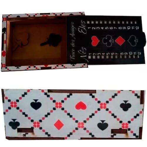 Caixa Estojo Porta Baralho Madeira Marcador Duplo De Jogos Caixa porta baralhos amadeirada com divisórias e marcador de placar prontos para jogar. Caixa porta baralhos é excelente para guardar e/ou organizar suas cartas de baralho, deixando tudo pronto para jogar e se divertir a qualquer momento. Surpreenda suas visitas com este lindo suporte porta baralhos em madeira mdf. Deixe seu cantinho do churrasco, cozinha, sala e/ou varanda gourmet com um clima agradável, alegre e descontraído. Sendo também uma ótima opção de presente. Dimensões: - suporte amadeirado: altura: 12 cm x largura: 4 cm x comprimento: 8 cm. Características do produto: - madeira mdf tratada ecológicamente de alta qualidade. - excelente para presentear e/ou brincar entre amigos. - produzido por artesões profissionais seguindo um padrão de qualidade que atenda o gosto dos nossos clientes Cuidados: - recomendamos o uso de pano levemente umedecido para sua limpeza. do produto: - o produto é muito bem acomodado dentro da caixa, e super embalado para evitar quebras, ainda assim possuímos um sistema de e troca. Imagens meramente ilustrativas - produto artesanal, podendo variar de cor e/ou tonalidade Marca: Não Informado