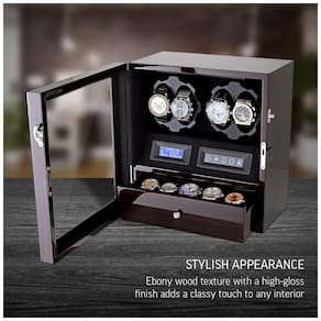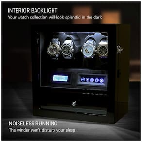 COMPATIBILIDADE UNIVERSAL 2 rotores programados individualmente e 15 programas de corda disponíveis oferecem compatibilidade para todos os modelos de relógio. Você pode definir o número de Turns Per Day de 650 a 1950 TPD. LUZ INTERIOR O movimentador do relógio possui luzes LED integradas. Seus relógios ficarão especialmente bonitos no escuro. FÁCIL DE USAR E CONFIGURAÇÃO Um display LCD mostra todas as informações disponíveis sobre os modos de operação do movimentador de relógio. O controle de toque simplifica o processo de configuração. TODA A SUA COLEÇÃO DENTRO 4 slots para enrolador de relógios e 5 compartimentos de zenamento de relógios proporcionam máxima usabilidade em um tamanho compacto. O DOOR LOCK permite impedir o acesso indesejado Marca: Não Informado