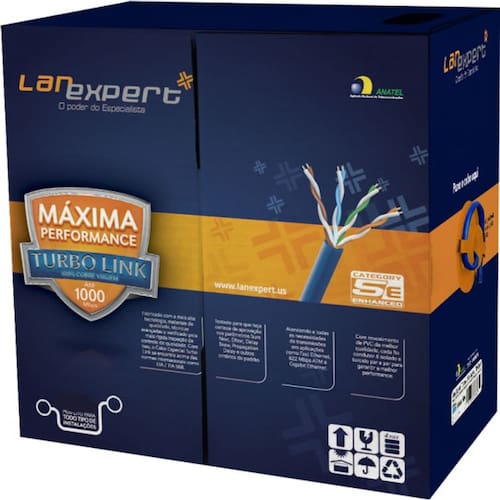 Este cabo é fabricado com máquinas de alta tecnologia, matéria-prima de qualidade, avançadas técnicas e verificado por um exigente controle de qualidade. Isso garante ao produto estar acima das normas como EIA/TIA 568. Testado para que haja certeza de aprovação nos parâmetros Sum Next, Elfext, Delay Skew, Propagation delay e outros critérios do padrão. Com capa PVC de qualidade, cada fio é isolado e torcido por par a par para garantir a melhor performance. Tenha suas necessidades de hoje e amanhã atendidas para aplicações como Fast Ethernet, 622Mbps ATM e Gigabit Ethernet pelo cabo Lan Expert Turbo Link. - Condutores de alto nível: Fios de qualidade são trançados par a par, assegurando alta performance em sua rede.. - Capa PVC: Desenvolvido com capa de PVC resistente, criando uma forte barreira contra elementos externos como poeira, sol e chuva. Ean: 7898453065324