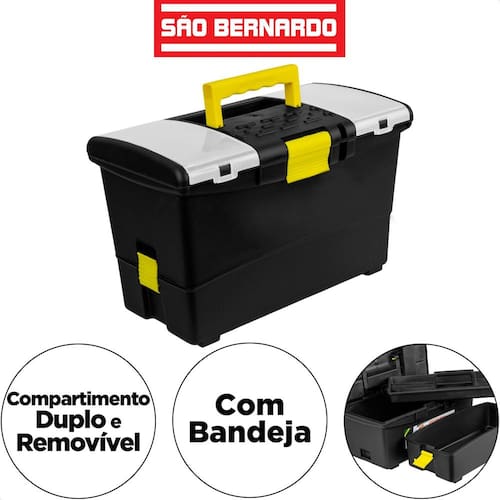 Caixa de ferramentas c/organizador extens.Cf26 preto - são bernardo 00cf26-02 --------------------------------------------------------------------- Todos produtos são novos Possuem de fábrica Acompanham ---------------------------------------------------------------------- - caixa de ferramentas cf-26 são bernardo - Praticidade e qualidade você encontra na caixa de ferramentas cf-26 são bernardo. Resistência elevada para proteger suas ferramentas, e transportá-las com facilidade para onde você estiver precisando. Informações técnicas: - cor: preto; - modelo: cf-26; - marca: são bernardo; - material: polipropileno. Dimensões: - largura: 40cm; - altura: 24,5cm; - profundidade: 20cm. Sobre o produto: - possui alça; - possui fecho; - fecho de plástico; - possui organizador; - indicado para guardar e transportar ferramentas elétricas, artigos para pesca, mecânica, camping, etc. Compartimentos: - 5 compartimentos internos; - 9 compartimentos externos. de 90 dias. Conteúdo da embalagem: -1x caixa de ferramentas cf-26 são bernardo. Informações sobre o anúncio: Imagens meramente ilustrativas; Todas as informações divulgadas são de responsabilidade do fabricante/fornecedor; Imagens com proteção autoral. O uso indevido estará sujeito a lei nº 9.610. não copie, evite transtornos . Marca: Não Informado