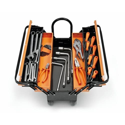 Descrição Organização e praticidade são as características que definem a Cargobox. Esta caixa de ferramentas da Tramontina PRO está disponível com e sem ferramentas, para atender às necessidades de profissionais tanto do segmento automotivo como industrial. O sistema exclusivo de rodinhas, puxador retrátil e alças dobráveis, facilita o transporte das ferramentas. Indicada também para manutenções externas, o trabalhador pode transportar as ferramentas de forma segura devido ao encaixe para inserção de cadeado de segurança. Porque não basta ter a ferramenta certa, é preciso ter ela sempre à mão. Descrição Técnica As maletas, carros e bancadas são testados em ensaios de carga, para garantir sua resistência durante a utilização na oficina ou indústria. A pintura eletrostática forma uma película protetiva que garante um acabamento excelente e resistência à corrosão. Armazenamento e transporte de ferramentas manuais, peças e acessórios. Devido a sua construção é muito prática e de fácil movimentação. As ferramentas são produzidas e testadas conforme normas específicas. Recomendações de Uso: Use óculos, luvas e outros equipamentos de proteção individual EPIs de acordo com a tarefa a ser executada. Mantenha as caixas/maletas trancadas durante sua movimentação ou transporte. Não apoie peças sobre as caixas/maletas para realizar qualquer trabalho. Não sobrecarregue as gavetas das caixas/maletas com peso excessivo. Armazene em local limpo e seco. Itens Inclusos 01 Caixa De Ferramentas Profissional Com 35 Peças E Roda Cargobox Tramontina - 1387824610 Dados do produto : 90 Dias Marca : Tramontina NCM: 82041100 EAN: 7891114081350 Dados de Embalagem Peso Total Produto + Embalagem : 10890 gr Altura : 21 cm Largura : 56 cm Profundidade : 40 cm Marca: Não Informado Ean: 7891114081350