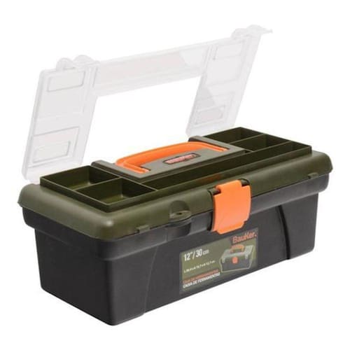 Deixe a ordem prevalecer em sua oficina ou sala para bricolage. Adquira a caixa de ferramentas Bauker 12 polegadas, o espaço ideal para você ter sempre à mão os acessórios das suas ferramentas mais usadas. Você tem uma maleta que se torna uma excelente opção para levar parafusos, porcas, serras, chaves de fenda e pequenos utensílios para qualquer lugar. Tudo vai ter um espaço nesta caixa. Características da caixa de ferramentas Bauker Vai usar muito esta caixa de plástico, pois terá aí, nos seus diferentes compartimentos, as alfaias que utiliza com mais frequência em reparações e trabalhos de bricolage. Seu design o torna atraente, mas ao mesmo tempo muito versátil, para transportar o maior número de produtos para o local de trabalho. A caixa mede 12 centímetros de altura, 30 centímetros na frente e 16,5 centímetros de largura, o que lhe confere uma grande capacidade. É preto, com tampa transparente e detalhes em verde e amarelo. Suas dobradiças são feitas de plástico, então a ferrugem não será um problema para você. E sua tampa superior, uma vez fechada, não permite que o conteúdo dos compartimentos transborde.