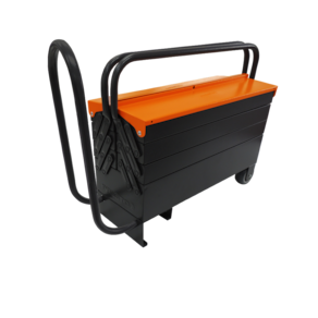 Além disso, a caixa conta com duas rodas siliconadas de alta qualidade, que garantem uma movimentação suave e silenciosa. Também possui uma alça retrátil ergonômica, que torna o transporte mais confortável. Seu design reforçado proporciona durabilidade, com dobras em todas as gavetas para suportar o peso dos itens.