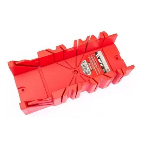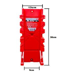 Caixa Gabarito Meia Esquadria Plástico Para Corte Em Ângulos Caixa de esquadria feita de plástico. O número de dentes para uma polegada é 9. O cabo é de plástico tipo Ferramenta de aplicação é ligado ao corpo com parafusos. Projetada para fixação de peça em processamento e serragem, precisa de ângulos entre 45 e 90 graus. Espessura máxima da peça em processamento é de 40 mm.