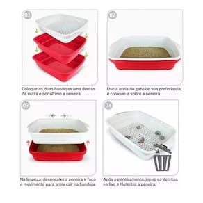 Dicas de Uso: Coloque a caixa em um local tranquilo e acessível para o gato. Mantenha a higiene trocando a areia regularmente. Lave as peças da caixa periodicamente para evitar acúmulo de sujeira.