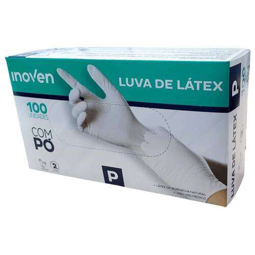 Caixa Luva Descartável Latéx com Pó Inoven 10x100un P CA 45332 Luva de látex - 10 cartuchos com 100 unidades = 1000 unidades Instruções de Uso Lavar e secar bem as mãos antes do uso. Verificar o tamanho correto para suas mãos. Calçar a luva cuidadosamente, recomenda-se retirar anéis ou outros acessórios que possam perfurar a luva. Indicações de Uso Para uso de higiene, cuidados pessoais, aplicação de tinturas e cremes capilares, manuseio e trato de animais. Precauções O uso deste produto pode causar reações alérgicas em pessoas sensíveis ao látex. Mantenha este produto em local fresco e arejado, ao abrigo de luz. Proibido reprocessar. Marca: Não Informado Ean: 17898964629777
