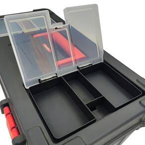 2. Organização Ampliada: Inclui bandeja removível e compartimentos externos, permitindo separar ferramentas pequenas, como parafusos e brocas, das ferramentas maiores. Facilita a organização e o acesso rápido aos itens.