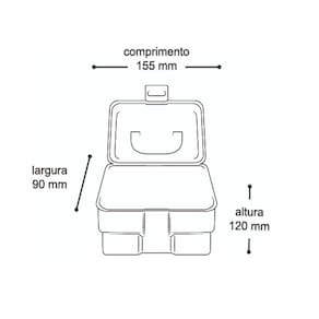 Maleta Porta Treco Prata Com Alça E Trava Maleta porta treco. Contém uma unidade. Modelo com alça e trava. Formato retangular. Disponível na cor prata cinza . Indicado para armazenar pequenos objetos. Produto ideal para manter a organização. Material de alta qualidade. Composição: Polipropileno. Medidas: 9 cm x 15,5 cm 12 cm alt. x comp. x larg. .