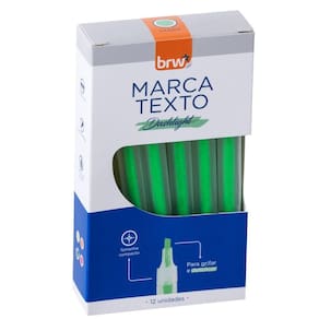 Caixa Marca Texto Fluorescente Transparente 12 UNIDADES BRW Verde -