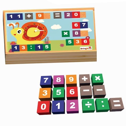 A caixa matemática irá proporcionar o aprendizado das operações manipulando as peças do jogo. Trabalha números, horas e estimula o pensamento lógico.