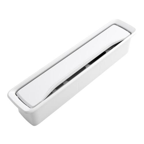 Medidas e instalação: Comprimento: 242 mm Largura: 53 mm Altura: 89 mm. A altura fica embutida na mesa/ móvel/ bancada, deixando apenas a tampa e a borda superior da caixa visível. Medidas do corte para instalação: 228 x 46 mm