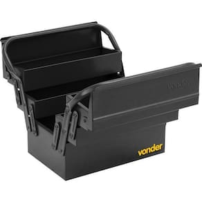 Caixa Metálica Para Ferramentas Sanfonada 300X190X200Mm 5 Gav Conteúdo da embalagem1 Caixa metálicaAplicações e dicas de usoIndicada para acondicionamento de ferramentas e afinsDestaques e diferenciaisPossui 5 gavetas, sendo: 1 fixa e 4 articuladas, além de alça fixa para transporte e porta-cadeado DETALHES TÉCNICOS Comprimento da caixa metálica: 30 cm Largura da caixa metálica: 19 cm Altura da caixa metálica: 20 cm Material da caixa metálica: Chapa de aço Cor da caixa metálica: Preta Capacidade de carga: 28 kg