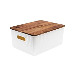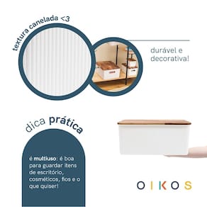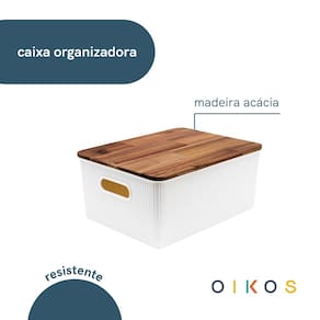 "conheça a caixa organizadora canelada com tampa de acácia 16L da Oikos!