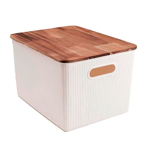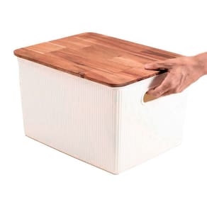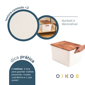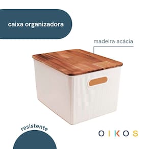 "conheça a caixa organizadora canelada com tampa de acácia 23L da Oikos!