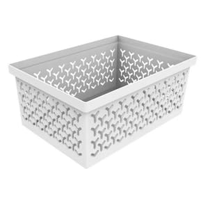 Garantia: 90 dias / Peso: 588g / Cor predominante: branco / Referência: 401022001; Dimensões: 31,7cm (C) x 22,7cm (L) x 14cm (A); Tamanho: M; Conteúdo: 1 cesto organizador com tampa; Material: polipropileno.