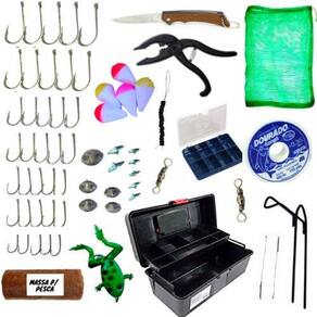 Caixa organizadora com itens de pescaria completa Caixa completa para pescar Além dos itens básicos da pescaria com uma quantidade maior como anzol 50 und. , boia 09 und , linha, ele vem com alicate pega peixe o que é essencial na pescaria na hora de retirar o peixe da agua que facilita bastante , vem também com suporte de chão para você colocar sua vara e deixar ela em espera até o peixe puxar a isca, inclui também um para cortar a linha na hora de amarrar o anzol entre outras coisas, sacola de nylon e também vem com uma massa pronta isca ela é muito conhecida nos pesqueiros, rios ,lagos e uma isca frog. Segue abaixo os itens e descrição do produto : itens: 01 - 01 un. Caixa maleta organizadora 02 - 01 un. Alicate pega peixe 03 - 50 un. Anzois divididos em 5 tamanhos 04 - 09 un. Boias cores em 3 tamanhos 05 - 12 un. Chumbadinhas divididos em 4 tamanhos 06 - 01 un. Linha 0,35 para 6 kg / 100 metros 07 - 01 un. 08 - 01 un. Isca frog perereca ideal para trairas/ tucunares ... 09 - 01 un. Massa pronta só iscar e pescar 10 - 01 un. Suporte de chão para vara 11 - 01 un. Sacola de nylon 12 - 01 un. Estojo com 8 repartições pequeno 13 - 02 un. Encastor 14 - 02 un. Girador 15 - 01 un. Stop para chumbada com 10 borrachinhas São mais de 70 unidades ... segue mais algumas descrições : Caixa Tamanho: 30 cm de comprimento x 15 cm largura x 13 altura Material: polipropileno Estojo Tamanho: 12cm comprimento x 8cm largura x 2,5cm altura Com 8 repartições com tampa transparente Cor: azul Material: polipropileno Linha 100 metros de linha 0,35mm de nylon monofilamento para 6 kg Anzol 10 unidades anzol marine sports n 04 - 2,4cm x 1cm 10 unidades anzol marine spors n 06 - 2,1cm x 0,8cm 10unidades anzol marine sports n 08 - 1,8cm x 0,7cm 10 unidades anzol marine sports n 12 - 1,4cm x 0,5cm 10 unidades anzol marine sports n 01 - 3,0cm x 1,3cm Material: aço niquel Boias 03 unidades boia n 1 - 1,5cm cores 03 unidades boia n 2 - 2,0cm cores 03 unidades boia n 3 - 2,5cm cores Material: isopor Cinza 07 unidades Cinza totalizando 2 gramas 02 unidades Cinza 5 gramas cada 02 unidades Cinza 10 gramas cada 01 unidade Cinza 15 gramas Material: Cinza Girador 02 unidades de girador n 08 medindo 2cm Material: aço inox Encastor 02 unidades medindo fio 0,26 x 10cm Material: fio de aço Stop chumbada 01 unidade de stop para segurar a chumbada na linha com 10 borrachinhas Tamanho: 15 cm aberto Material: metal Será enviado modelo conforme sem escolha Suporte para vara Tamanho: 20 cm comprimento x 7,5cm apoio da vara Material: metal pintado Sacola de nylon Tamanho : 30cm comprimento x 45cm altura Material: nylon nós da equipe sekyped trabalhamos com produtos de qualidade, visando sempre oferecer aos nossos clientes o que há de melhor para que possam ter experiências inesquecíveis em suas pescarias, buscamos sempre enviar o seu produto o mais rápido possível, estamos sempre a disposição para qualquer dúvida. Att equipe sekyped