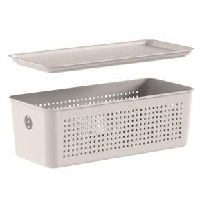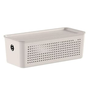 Caixa Organizadora com Tampa 27x12x10cm Bege Cesto Flow 3L Ou Lavanderia Closet.