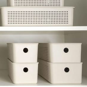 O cesto organizador com tampa Flow mantêm cada espaço da casa organizado, proporcionando uma rotina fluida e eficiente. A caixa organizadora bege é a solução ideal para armazenar e organizar produtos de limpeza, roupas, acessórios ou alimentos. Possui cantos arredondados que trazem um design elegante, pega em formato redondo para encaixe confortável dos dedos que facilitam o manuseio e transporte. Conta com área livre para aplicação de etiquetas de identificação. O cesto organizador multiuso é empilhável, auxiliando na organização até mesmo em ambientes compactos, otimizando seu espaço.