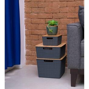 Essa é a caixa organizadora com tampa de bambu 18L da oikos. Ela tem um design moderno e natural, com corpo de plástico e tampa de bambu. Além de organizar, essa caixa também ajuda a decorar ambientes! Fica uma graça ;) Com ela, você consegue organizar acessórios, produtos de higiene, toalhas, brinquedos, sapatos, material de trabalho, produtos de limpeza, roupas e mais. Superversátil, ela vai bem em qualquer lugar da casa: quarto, sala, banheiro, escritório etc. Ela ainda é bem fácil de carregar, pegou pelas alças, levou! Para limpar, basta utilizar um pano úmido e nada mais. Além de ser charmosa, a tampa de bambu permite empilhar uma caixa na outra e assim, aproveitar bem todo o espaço! Dimensões do produto:Comprimento: 35,3 cmAltura: 22,4 cmLargura: 29,5 cm