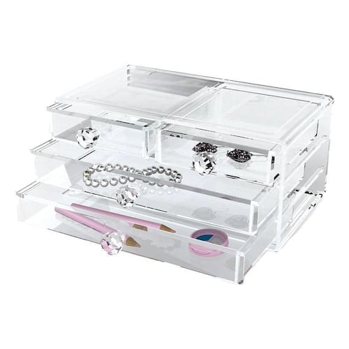 Mantenha seus itens organizados e facilmente acessíveis com a Caixa Organizadora com Gavetas. Confeccionada toda em acrílico de alta qualidade, ela é perfeita para uso em qualquer ambiente que necessite de uma solução prática e elegante para armazenamento. Oferecendo funcionalidade e estilo, suas gavetas deslizam facilmente. E por ser de acrílico transparente, permite a fácil visualização dos itens armazenados. Os puxadores de suas gavetas possuem um trabalhado que garante um design elegante, trazendo mais luxo a peça. Perfeita para organizar suas joias, maquiagens e outros objetos, essa peça única está te esperando para deixar sua decoração mais linda