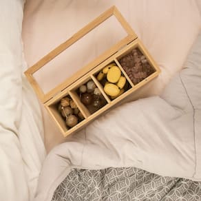 Caixa Organizadora de Bambu Oikos com Palha e 4 Divisórias Retangular