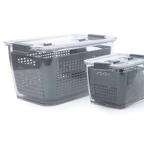 Atenção: as cores dos produtos podem sofrer variações em função das características do monitor e do a name=hlk149387685/acelular. Caixa organizadora de geladeira com tampa jogo com 3 peças plástico incolor / cinza 15x18,5x29cm jg c/3 pc - cesta interna e trava na tampa, capacidade total 1565ml