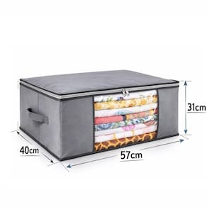 A Caixa Organizadora com Zíper é ideal para armazenar roupas de cama, cobertores, edredons, toalhas, travesseiros, roupas sazonais, brinquedos e diversos outros itens do dia a dia.