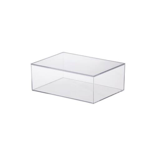 Espaço organizado com um linda caixa transparente, com tampa, que pode acomodar diversos itens é o ideal. Esse modelo pode ser utilizado para acomodar: