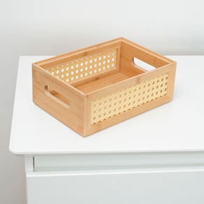 Essa é a caixa organizadora empilhável de bambu e palhinha 24cm da OIKOS.:: versátil: bacana para guardar e organizar acessórios, itens de escritório, brinquedos, potes e muito mais! :: empilhável: você pode colocar uma caixa em cima da outra, além de deixar tudo bem organizado, otimiza o espaço no armário e na bancada. dica extra: dá também para empilhar tamanhos diferentes, fica lindo e bem prático.:: alça vazada: o espaço na lateral facilita o manuseio e transporte por onde você quiser. :: combina com tudo: cabe em diferentes ambientes. do quarto ao banheiro, da cozinha à sala!:: decorativa: o detalhe da palha e a cor natural são atemporais e combinam com diversos estilos de decoração, deixando o ambiente mais charmoso e rústico. :: feita de bambu: material leve e ecologicamente correto.:: durável e higiênico: o bambu é resistente e tem propriedades que evitam a proliferação de bactérias, só precisa lavar e secar de acordo com as recomendações, combinado?"