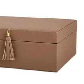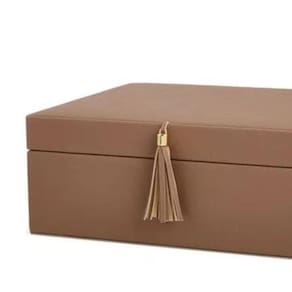 Dimensões Altura: 11cm Largura:27,00cm Profundidade: 23cm Material: Mdf e Revestimento em Linho Cor Marrom